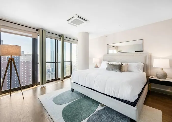 The spacious Lux Dtown Penthouses 9Bd-9Ba Sleep 25 Parking, Pool, Gym Chicago apartment is nestled in the centre of Chicago and is nearly a 25-minute walk from the neo - Gothic skyscraper "Tribune Tower". The apartment has a patio with views of the lake.